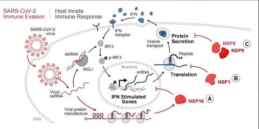 Proteini su osnovna jedinica naših ćelija - svi proteini u našem organizmu (pa i interferoni) nastaju od našeg RNK koji nastaje konverzijom našeg DNK. Virusi odavno napadaju naš RNK tokom infekcije na razne načine: poliovirusi sprečavaju translaciju našeg RNK u proteine, citomegalovirusi sprečavaju prenos naših proteina kroz ćelije, virus gripa (influenza) sprečava ključne modifikacije RNK. Sve ove virusne strategije su poznate i za njih postoje manje-više uspešne terapije koje targetiraju ove funkcije.