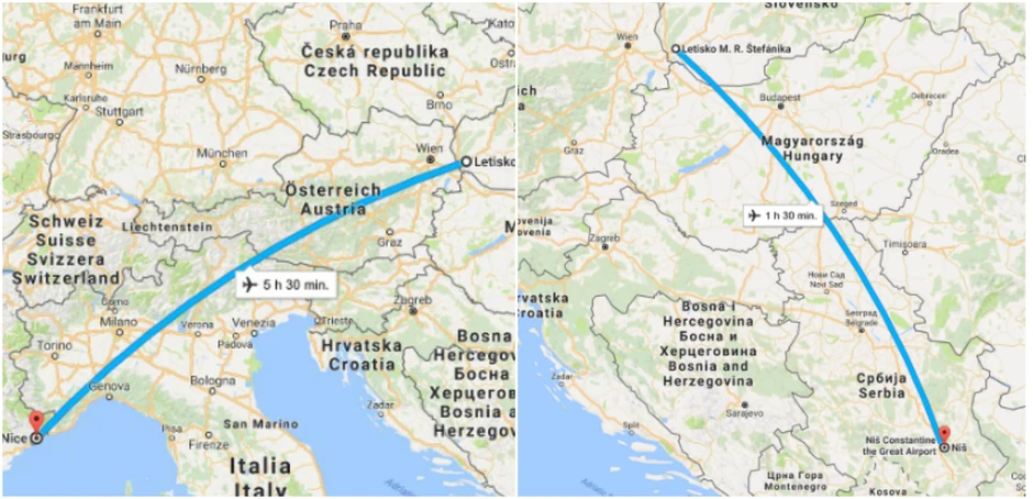Četvoro mladih Čeha se umesto na rivijeri u Nici neočekivano obrelo u Nišu, pošto je organizatore njihovog kraćeg odmora pred praznike u Francuskoj zbunila nova linija kompanije "Rajaner" Bratislava–Niš, te su im zbog sličnih imena dva grada rezervisali avionsku kartu za let u Srbiju.