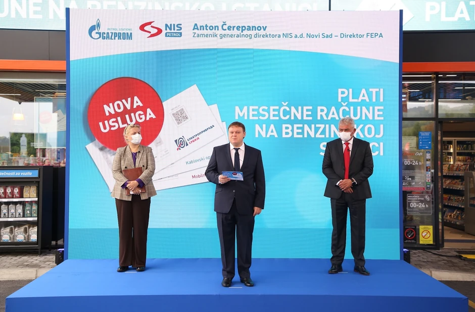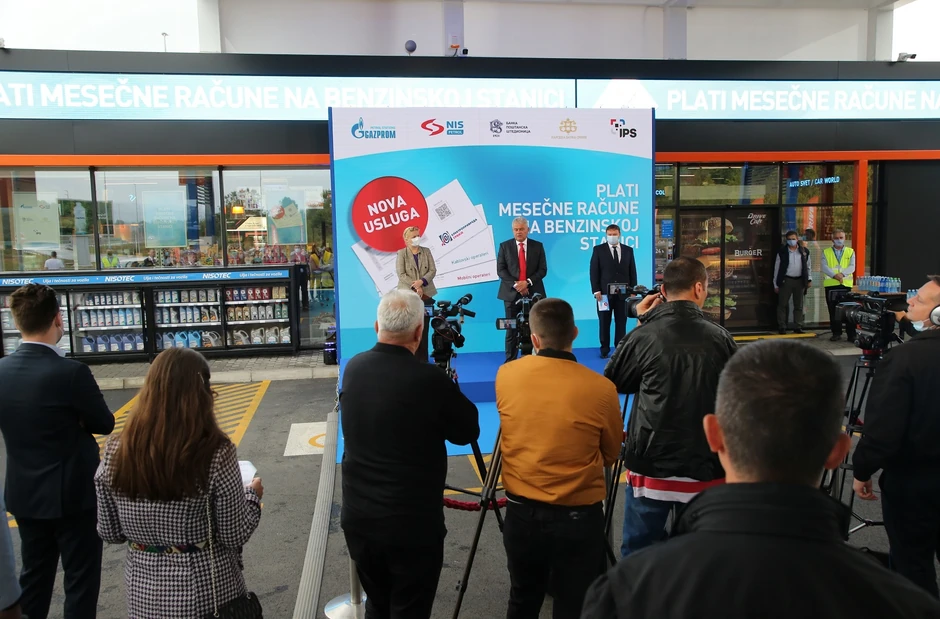 Nova usluga predstavljena je danas u prisustvu predstavnika kompanije NIS, Narodne banke Srbije i Banke Poštanska štedionica na GAZPROM benzinskoj stanici „Sokolići 1“ - najnovijoj benzinskoj stanici premijum brenda NIS-a i prvom maloprodajnom objektu na auto-putu „Miloš Veliki“.