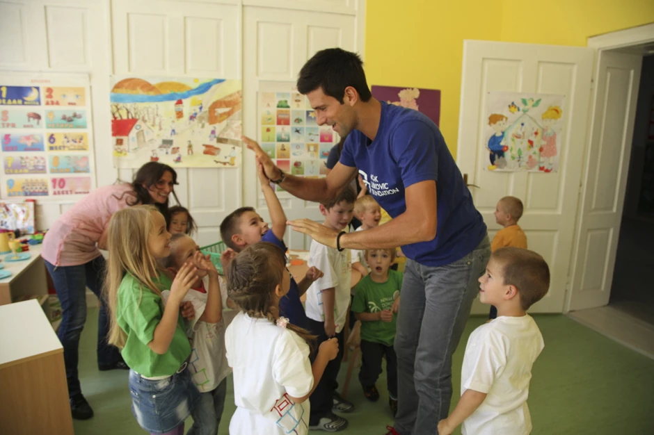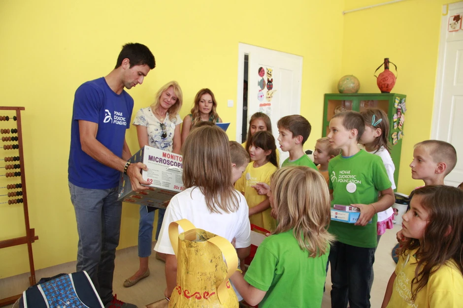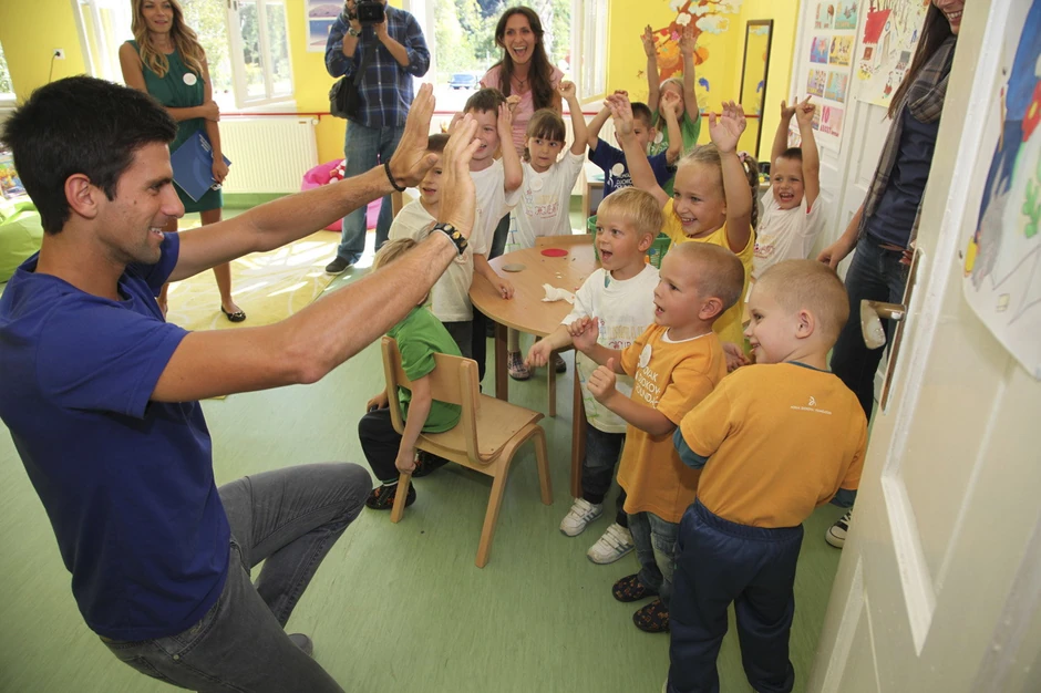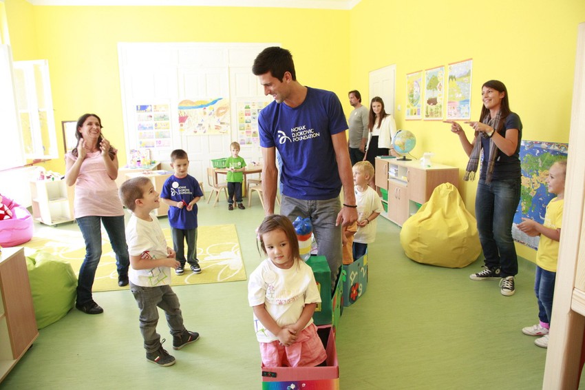 Novak je zajedno sa vojvotkinjom od Jorka, Sarom Ferguson, koja je globalni ambasador Fondacije, a došla je u Srbiju na poziv Milutina Getsbija, globalnog predsednika za prikupljanje novca, najpre obišao mališane koji su prvi polaznici ove ustanove.