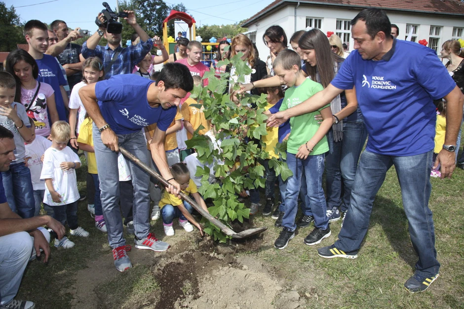 Najbolji rangirani teniser sveta je nakon toga, sa decom posadio drvo prijateljstva, a onda i simbolično postavio tablu sa imenom škole, u čemu su mu pomogli mališani.