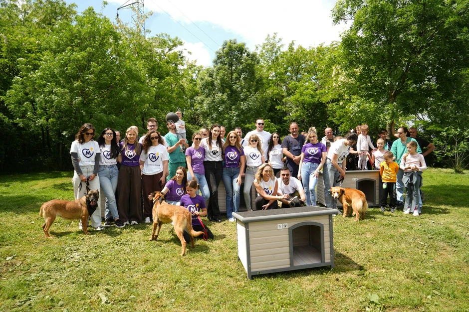 U ovom prihvatilištu trenutno boravi 900 pasa, a o njima se brine sa mnogo ljubavi i posvećenosti. Zaposleni iz kompanije i Fondacije Mozzart obišli su prihvatilište, slušali o tome kako se životinje ovde zbrinjavaju, a zatim timski prionuli na sklapanje kućica za pse, koji su odmah imali priliku i da isprobaju svoje nove domove.