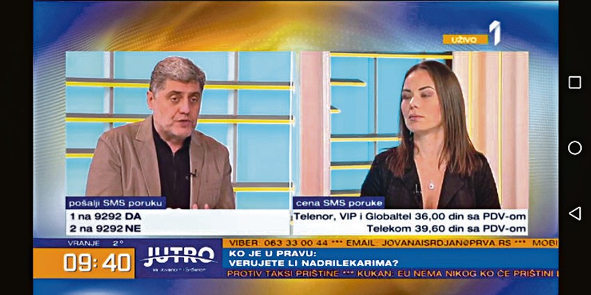 Biljana Jovanović, sestra preminulog Slavča Petrova, i Miroljub Petrović gostovali su juče u emisiji "Jutro sa Jovanom i Srđanom" na TV Prvoj. Biljana je u emisiji je ponovila ono što je ranije rekla za "Blic", da im je Petrović savetovao da ni slučajno ne idu kod lekara kad je njenom bratu otkriven tumor na mozgu i da će mu od njegovih tinktura biti bolje, te je, kako tvrdi sestra, kada je mladić preminuo, svu krivicu svalio na porodicu.