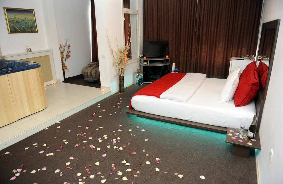 Mirišljave sveće, latice ruže oko velikog kreveta, prigušena svetla i žubor vode iz džakuzija postavljenog naspram ogledala koje pokriva ceo zid.