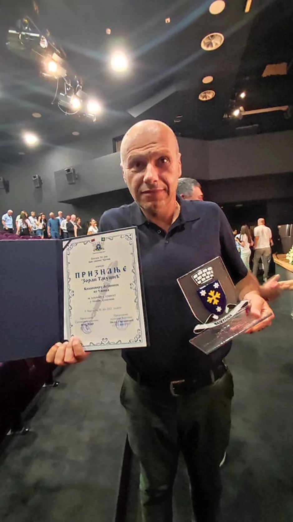 Čast mi je da sam od Opštine Čajetina, danas na njen dan, nagrađen priznanjem "Zoran Tmušić" koje se dodeljuje za humanost i ljudskost u teškim vremenima.