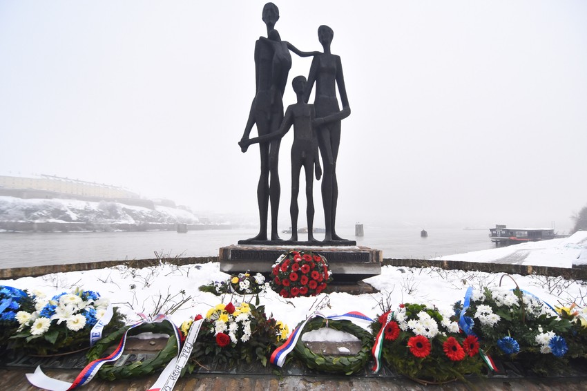 Na spomenik "Porodica" na Keju žrtava racije vence su položili predstavnici pokrajinske i gradske vlasti, jevrejske i romske zajednice, Vojske Srbije, ambasadorka Izraela Alona Fišer Kam i ambasador Mađarske Atila Pinter.