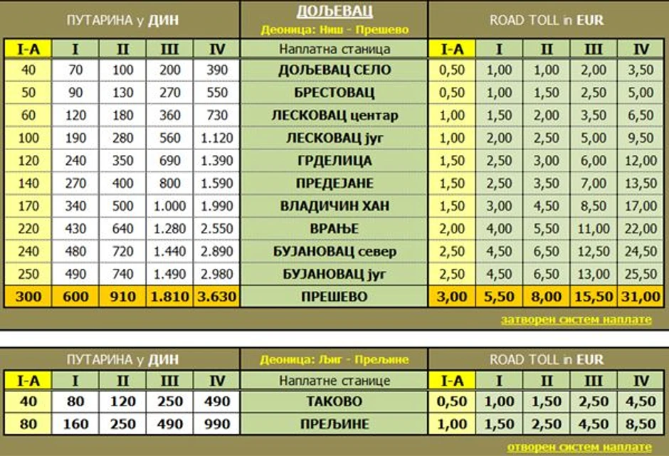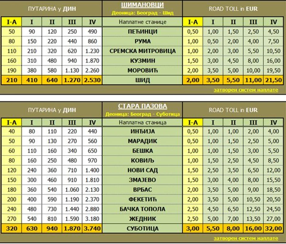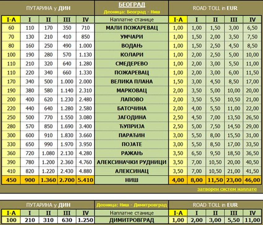 Cenovnik putarina, sa detaljanim prikazom novih cena po deonicama i kategorijama vozila, postavljen je na sajtu tog preduzeća.