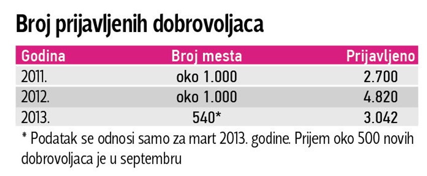 Vojska godišnje prima oko 1.000 dobrovoljaca, što je više od potrebe za profesionalnim vojnicima. To znači da im dobrovoljno služenje vojnog roka ne garantuje da će se i zaposliti kao profesionalni vojnici.