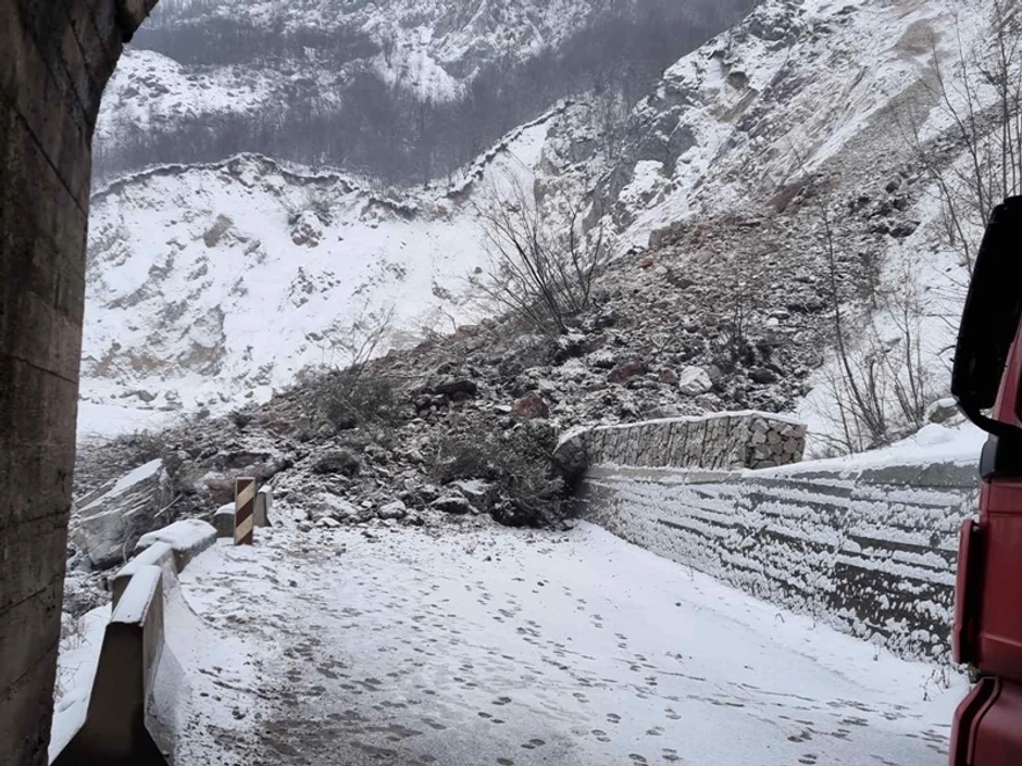 Nekoliko stotina kubika stena i kamenja, tokom noći survalo se na put, zbog čega je saobraćaj totalno obustavljen.