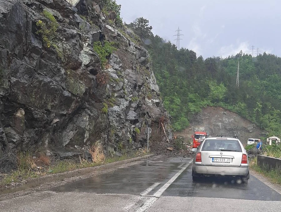 U mestu Druglići, na put se obrušilo nekoliko kubika krupnog i sitnog kamenja, zemlje i niskog rastinja i gotovo zatrpalo jednu stranu kolovoza u dužini od desetak metara.