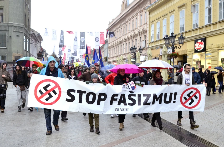 Više od 500 ljudi uprkos kiši i hladnoći okupilo se na Antifašističkom skupu u centru Novog Sada.