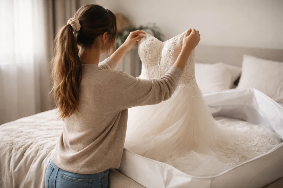 "Kupljena u naletu emocija, nošena jer je već bilo kasno da se povuče ručna. Preživela svadbu, ples, tortu i životne odluke. Venčanica je u savršenom stanju, za razliku od moje procene u tom trenutku.