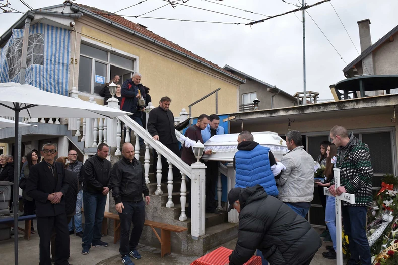 Kovčeg sa posmrtnim ostacima male Nađe su izneli sa sprata kuće u dvorište u kome je održano opelo.