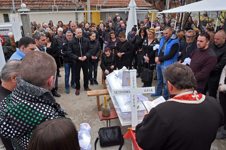 Dom porodice Petrović u Kragujevcu nalazi se na samom ulazu u naselje Male Pčelice. Od parkiranih vozila u ulici nije moglo da se prođe, jer je opelo održano u porodičnoj kući.