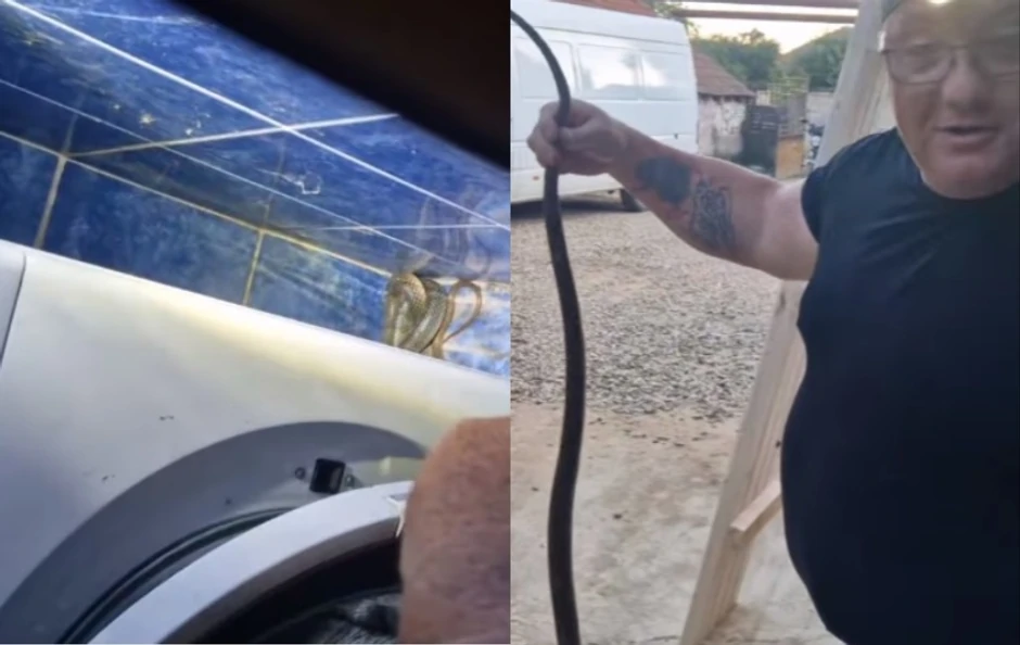 Vladica Stanković objavio je novi video snimak na svom Instagramu. Na njemu se vidi da je ovaj iskusni hvatač pronašao zmiju sklupčanu iza veš mašine srpske porodice.