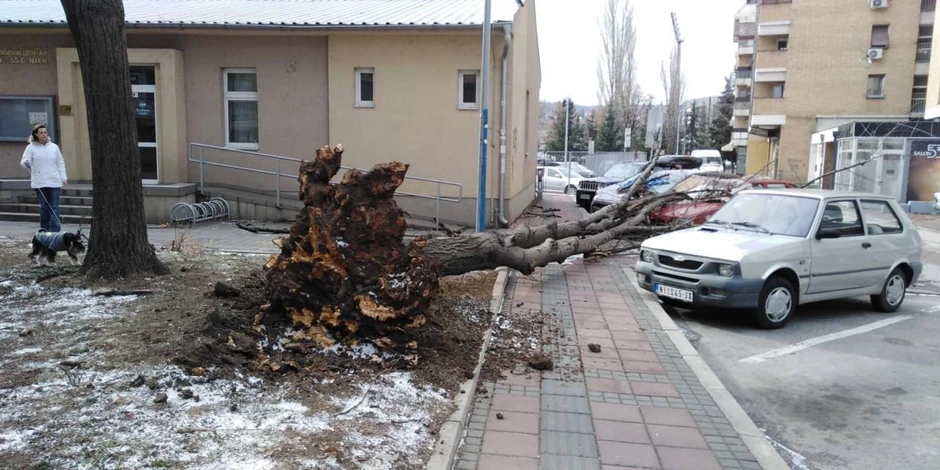 Jak olujni vetar koji besni i pravi haos širom regiona, tokom prethodne noći pogodio je i Srbiju, te je u Nišu, usled obaranja stabala drveća, došlo do oštećenja čak sedam putničkih vozila.