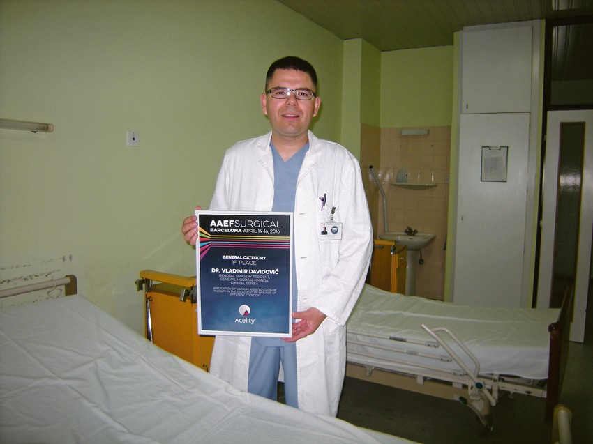 - Predstavio sam primenu vakuum asistirane kompresivne terapije u lečenju rana različitog porekla. Terapija podrazumeva primenu negativnog pritiska u lečenju rana koje nastaju kao posledica bolesti vena, arterija, šećerne i neuropatske bolesti, ili zbog dužeg mehaničkog pritiska, takozvane dekubituse. Ovu metodu uspešno primenjujemo i kod lečenja rana nastalih nakon operacija, kada dođe do infekcije ili stvaranja hematoma ili kada dođe do spontanog otvaranja rane, što je dalo odlične rezultate. Glavni efekat ovakve terapije jeste stvaranje granulacionog, novog tkiva koje je osnov za zarastanje rane. Protekle tri godine uspešno smo izlečili 32 pacijenta - kaže doktor Davidović, koji je u međuvremenu na još jednom kongresu imao dve usmene prezentacije.
