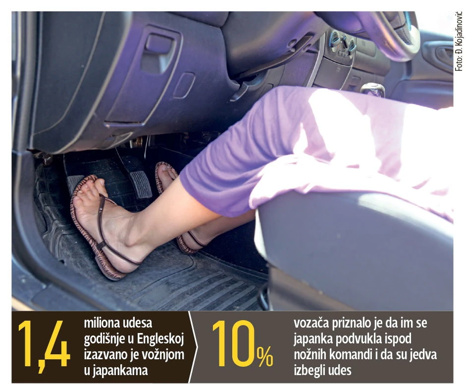 - S druge strane, upravljanje automobilom dok nosite neadekvatnu obuću ili dok ste bosi zaista može da ugrozi vašu i bezbednost drugih ljudi, pa je preporuka da se ne vozi u obući u kojoj nemamo osećaj da li smo dovoljno jako pritisnuli nožne komande. Takođe, papuča može da sklizne sa noge, pa umesto da vozač gleda na put, on gleda u pod i traži je, što je veliki rizik i po njega i po ostale učesnike u saobraćaju - kaže Božović za „Blic“.