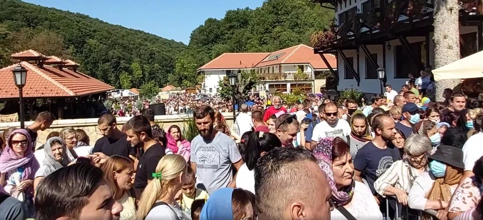 Tako je bilo i minulog vikenda u manastiru Tumane, blizu Golubačke tvrđave. Kako se može videti na snimku pred ulazom je bilo nekoliko stotina ljudi koji su "na gomili" čekali da uđu, a na prste jedne ruke su se mogli izbrojati oni koji su nosili maske.