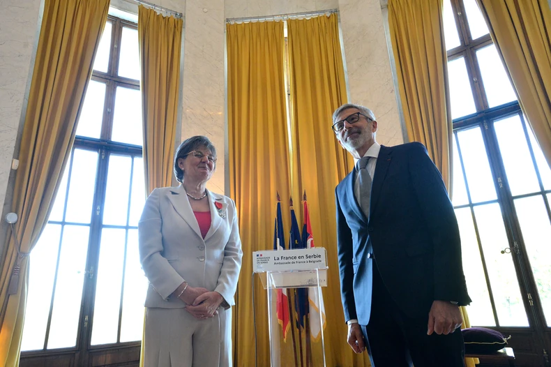 Ambasador Francuske Pjer Košar uručio je danas orden Legije časti, u rangu viteza, Sneški Kvadvlih Mihailović, generalnoj sekretarki "Europa Nostra" .
