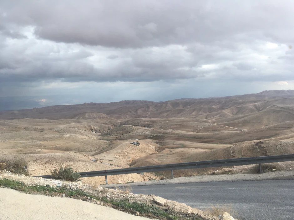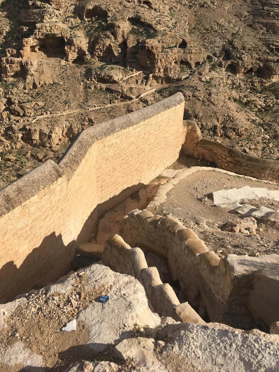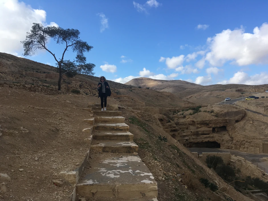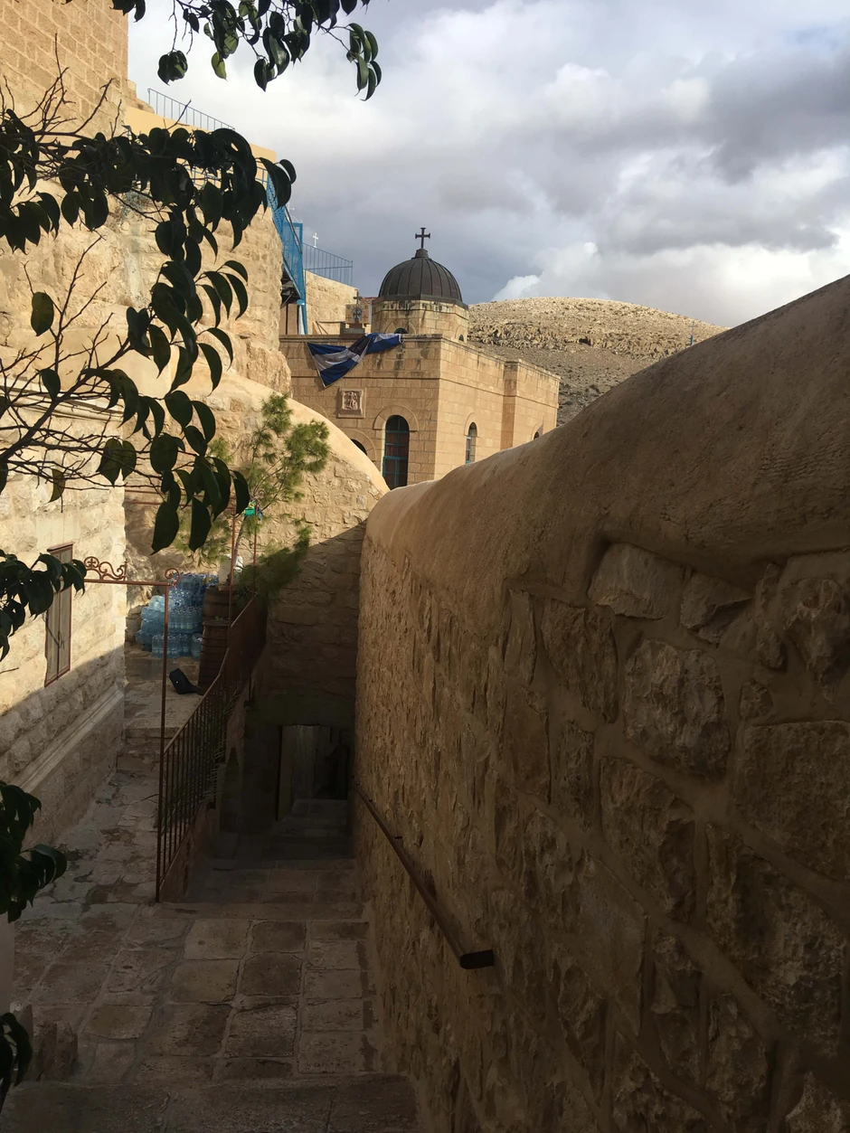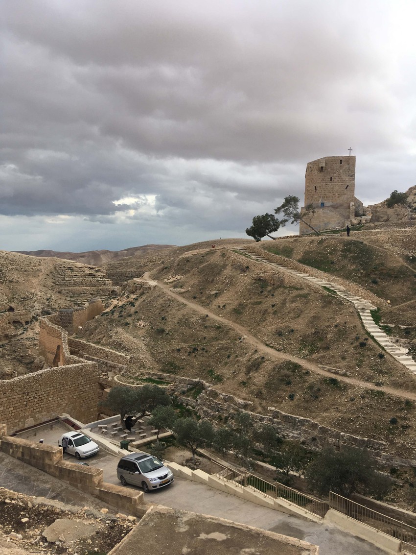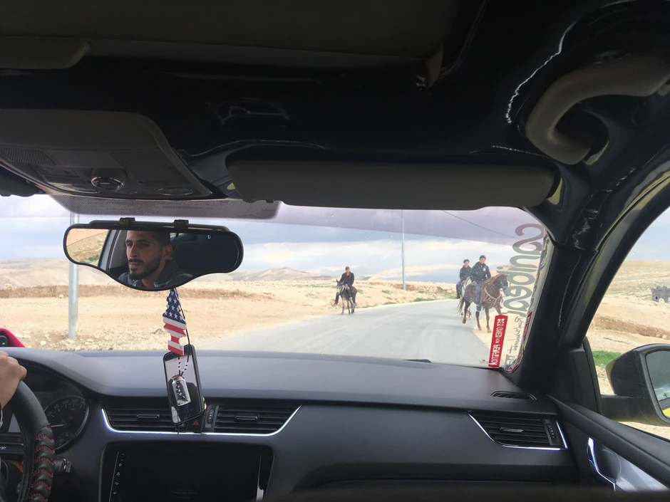 Nailazili smo na ljude koji su sa svoje desne trake najlaganije išli na konjima, decu koja su na putu igrala fudbal krpenjačom, pozdravljao nas je Jaser Arafat sa nedovršenih zgrada, da bismo na kraju prišli Mar Sabi.