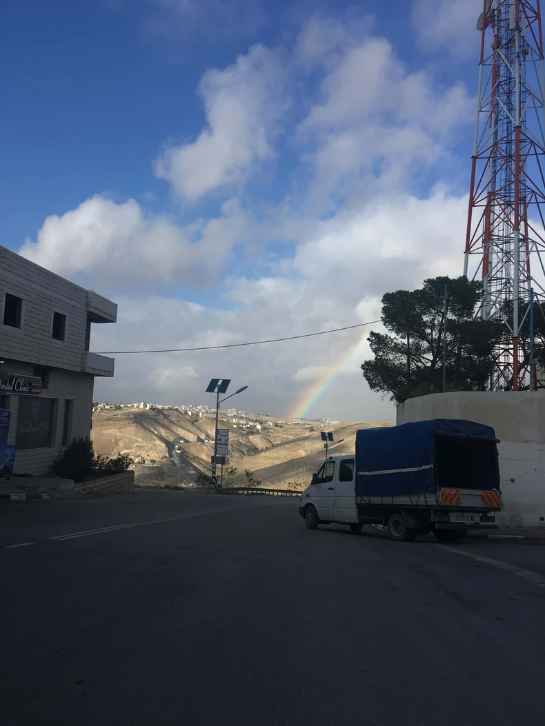 Ne merim vreme kao da sam u Vizantiji, ali je bilo jasno posle kratkog obilaska manastira da je vreme za polazak - jedna duga nas je pozdravila i mrak je počeo da pada, valja vratiti se u izraelski deo Jerusalima.