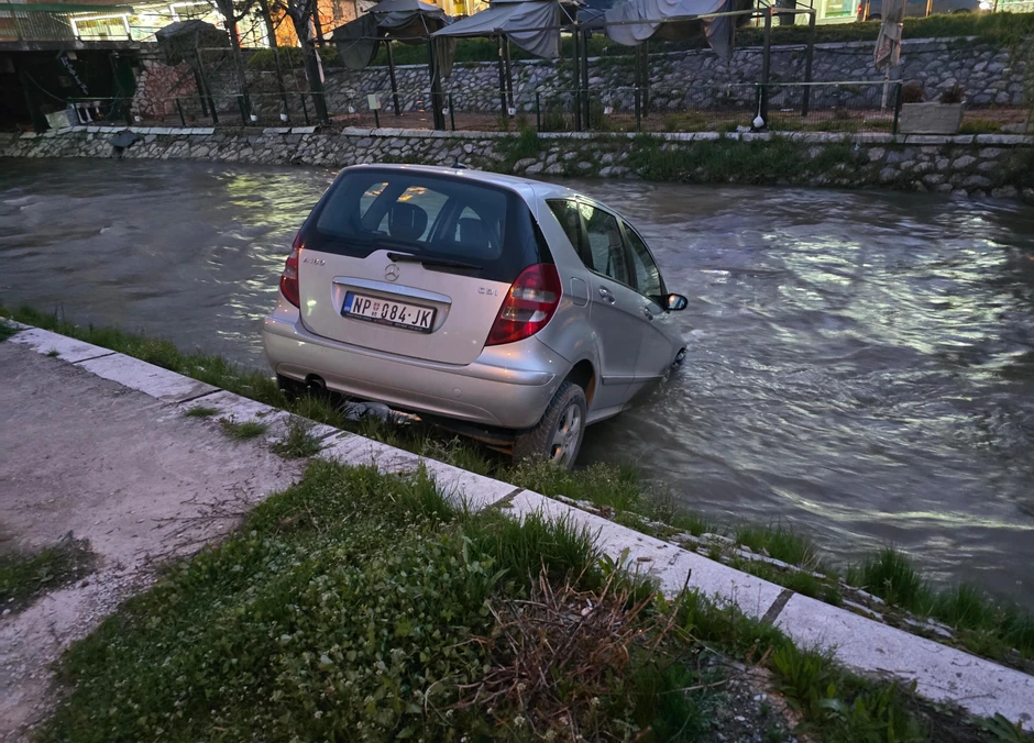 Neobična situacija dogodila se danas u Ulici 37. sandžačke divizije u Novom Pazaru, kada je "mercedes" novopazarskih registarskih oznaka, završio u reci Raški.