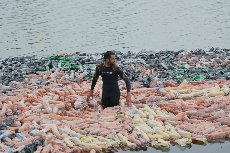 Josifovski kaže da je projekat nastao na placu reciklažnog centra EKOStar PAK u Beogradu, odakle su flaše prenete na Savu između Starog i novog železničkog mosta.