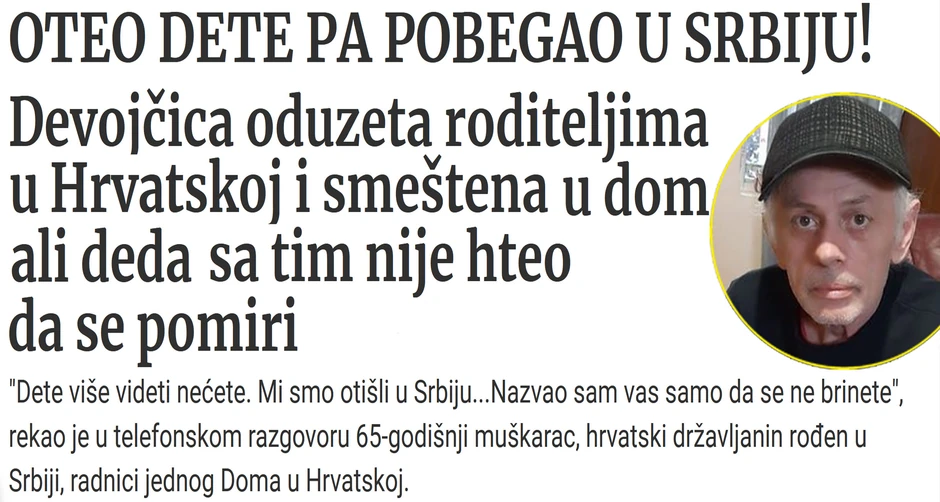 - Učinio sam šta sam učinio, ostavio sam u Hrvatskoj i kuću i posao samo kako bi unuka bila srećna. Dete me je tokom svake posete pitalo: "Deda, kada idemo kući?" Stalno sam govorio: "Drugi put." Nisam mogao da gledam više u nesrećno dete, rešio sam da je odvedem kako bih zašitito njene interese. Kada sam prešao granicu Srbije, javio sam domu da je dete sa mnom, da ne brinu i da se više neće vraćati za Hrvatsku. Nazivaju me otmičarem!
