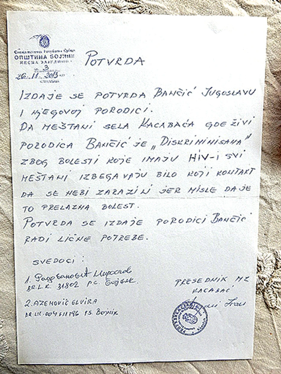 - Mi smo jedina bolesna porodica u Srbiji čija se deca nisu zarazila HIV virusom ni u majčinom stomaku ni posle rođenja. Sledili smo uputstva lekara, prošli sve obuke, a ja sam dobio i sertifikat predavača. Ali, našim seljanima ne može da se objasni da se sida prenosi seksualnim kontaktom – objašnjava on.