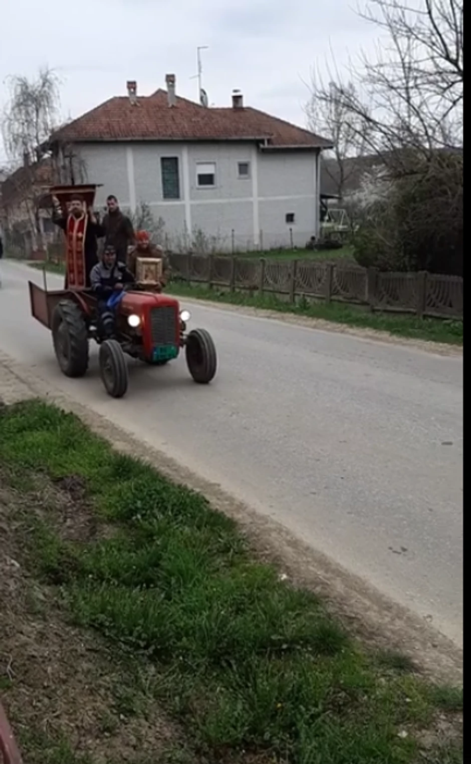U selu Maršić, u Kragujevcu, pop se ovoga puta našao u kombiju, a kako se može videti na snimku držao je tiganj iz koga je goreo tamjan.