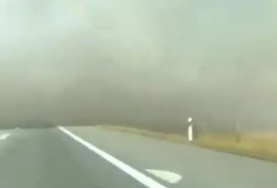 Novi snimak paljenja strnjike sa njiva pored puta pojavio se danas na društevnim mrežama. Koliko je ova pojava opasna, pokazao je nepoznati vozač, koji iznenada uleće u gust dim i bukvalno ne vidi ništa pred sobom.
