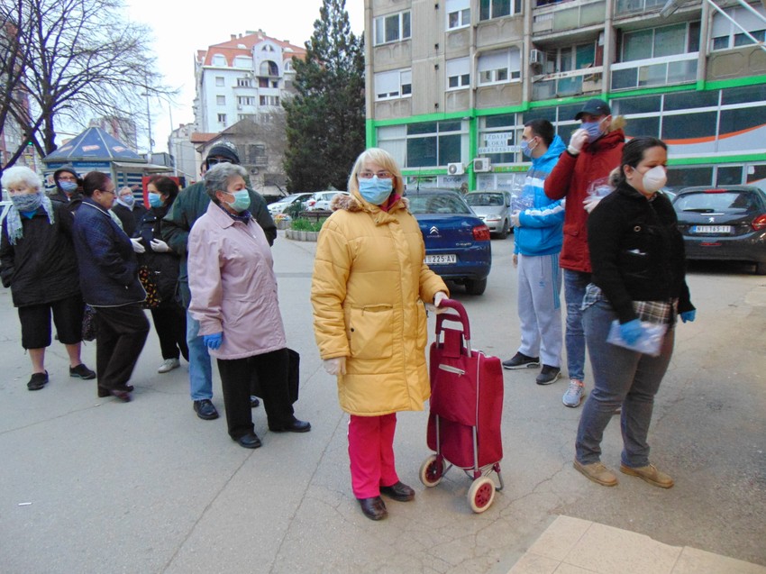 Ispred radnji su čekali u redovima i u markete ulazili u manjim grupama. Za red u prodavnicama bili su zaduženi volonteri Crvenog krsta, koji su delili maske svima koji iste nisu imali, a ispred radnji je stajala policija.