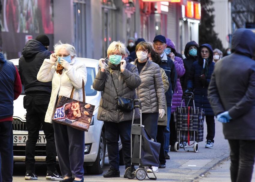 Novosađani stariji od 65 godina pohrlili su jutros do dežurnih prodavnica u vojvođanskoj prestonici ne obazirući se na predlog nadležnih da to učine u što manjem broju. Istini za volju poštovali su sve propise, veoma disciplinovano su slušali uputstva zaposlenih u marketima kao i velikog broja policajaca u uniformama i u civilu koji su im delili maske.