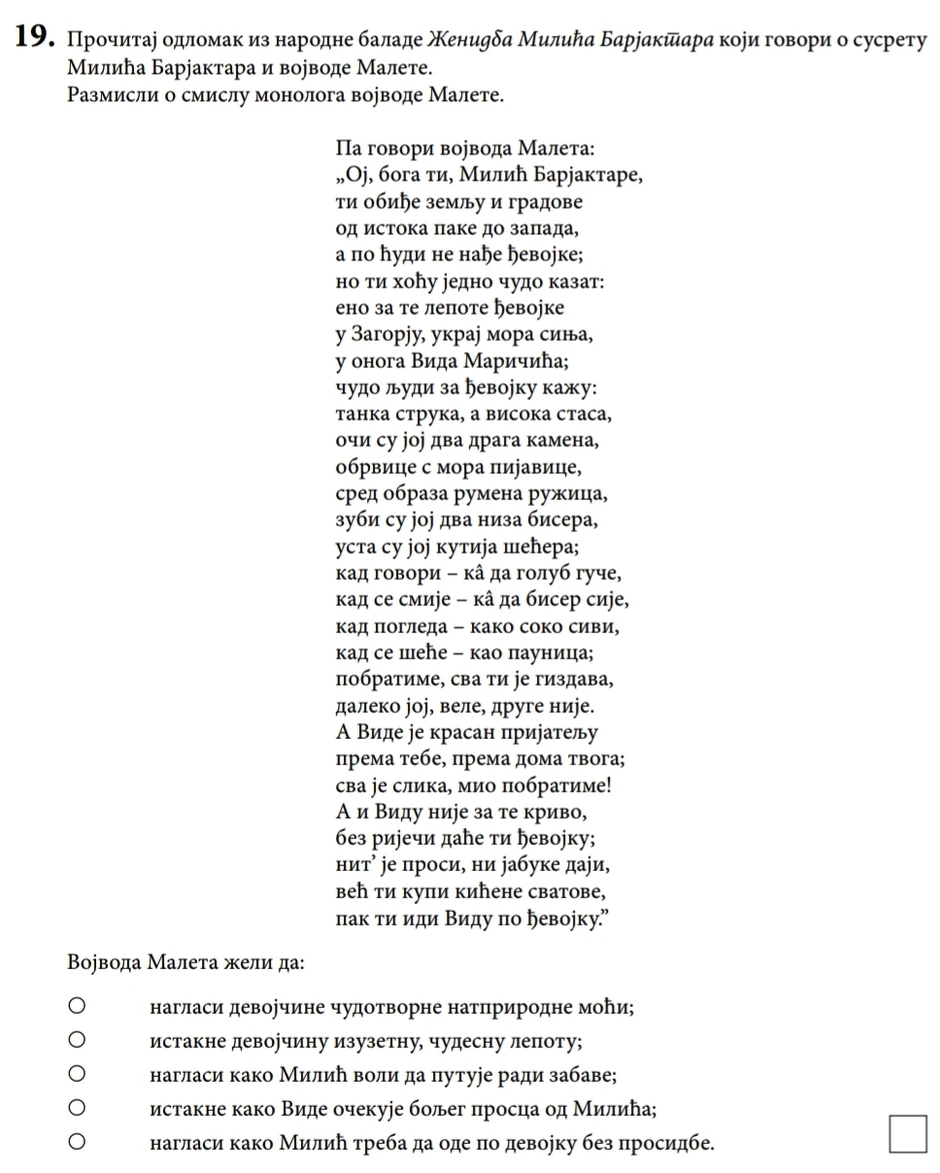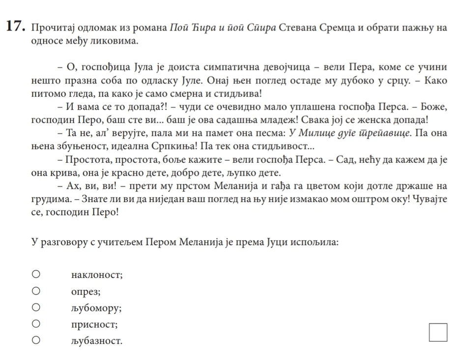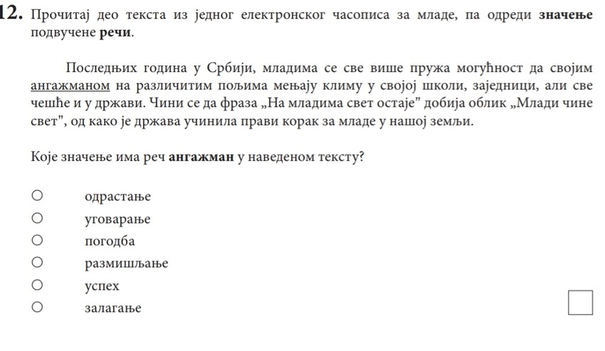 Ovako su izgledala pitanja na prvom probnom testu za male maturante: