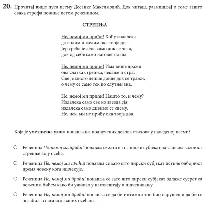 Na testu je bilo ukupno 20 zadataka, a deca su po završetku polaganja izjavila da pitanja nisu bila teška.