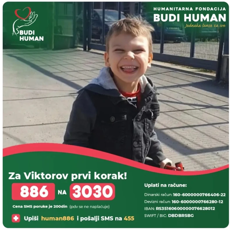 Za Viktorov prvi korak! Budimo humani! Pomozimo Viktoru! Uputstvo za uplate možete pronaći OVDE