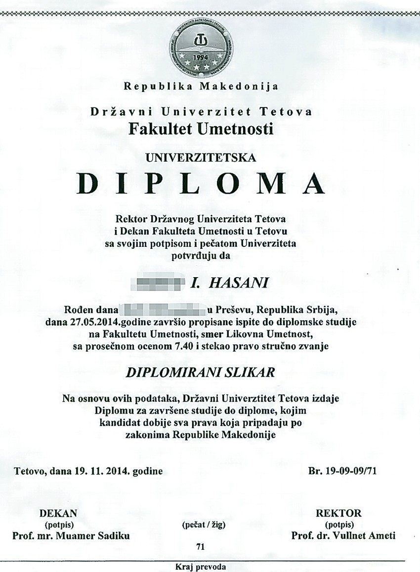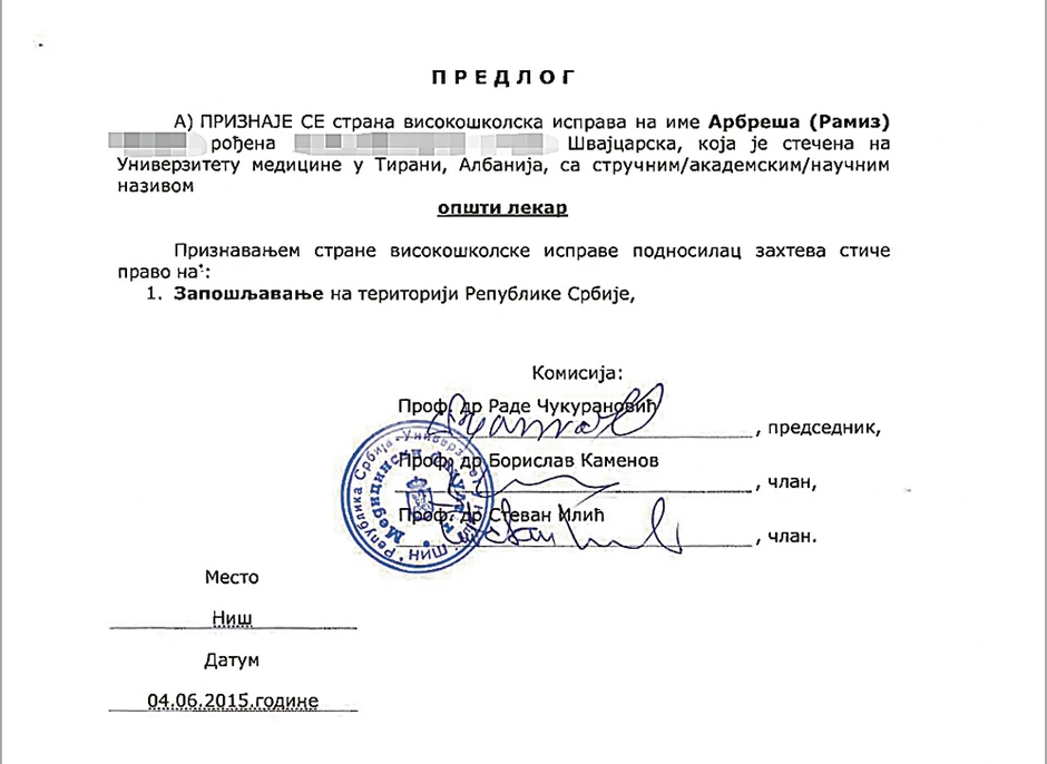 Na Niškom univerzitetu od 2012. do 2016. godine nostrifikovano je najmanje 200 diploma Albanaca stečenih na fakultetima u Albaniji, Makedoniji i na Kosovu i Metohiji, i to bez odgovarajućih provera njihove verodostojnosti.