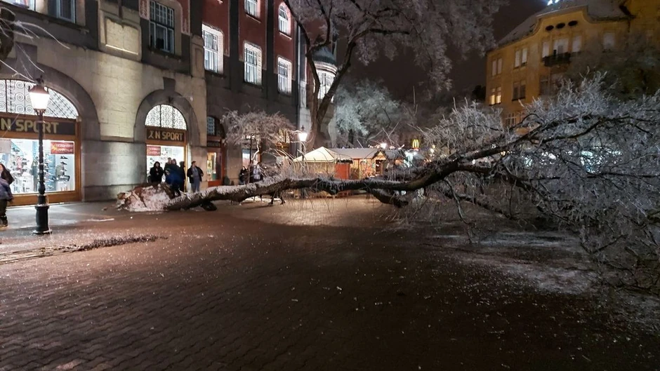 Naime, prvo je padala ledena kiša koja je prešla u susnežicu i sneg . Grane su od ranog jutra bile zaleđene i mraz je učinio svoje, a osim drveća palo je i nekoli bandera i pojedina stabla nanela su materijalnu štetu na vozilima, klupama i raznom mobilijaru u okolini.