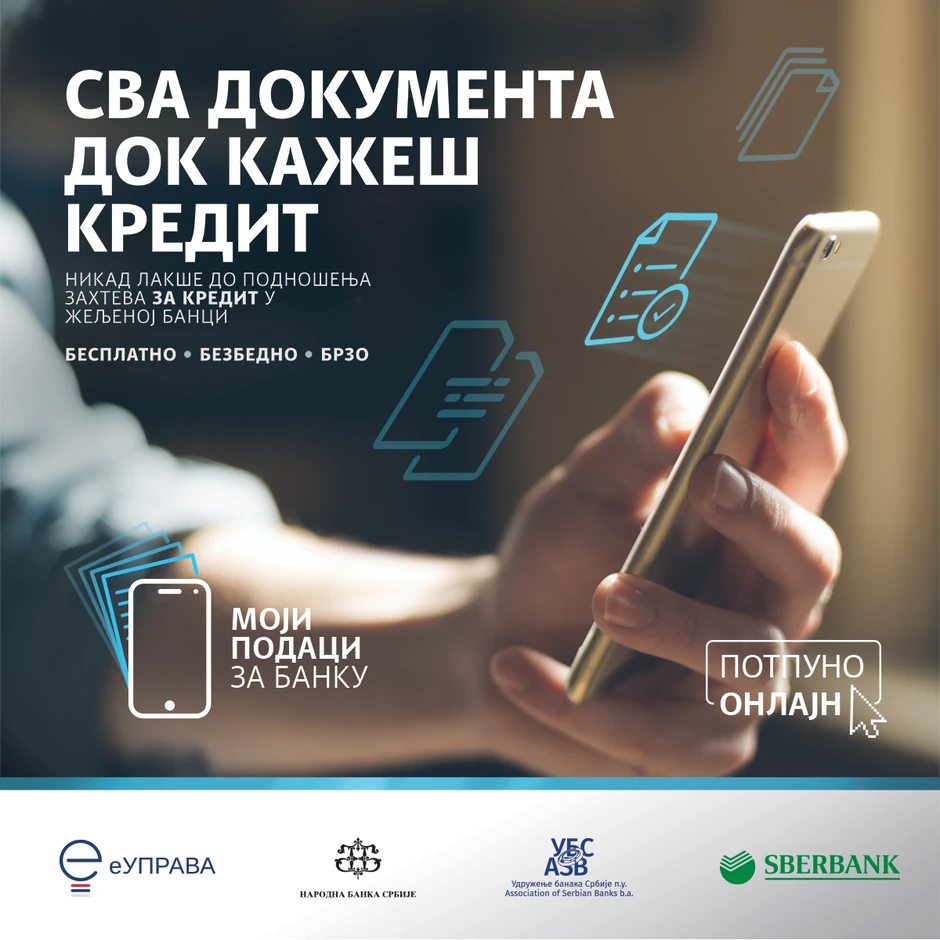 Sberbank Srbija jedna od tri banke u Srbiji koje su prve omogućile našim građanima da svoje lične podatke i dokumentaciju, neophodne za dobijanje kredita, banci dostave u digitalnoj formi i to preko portala eUprava.