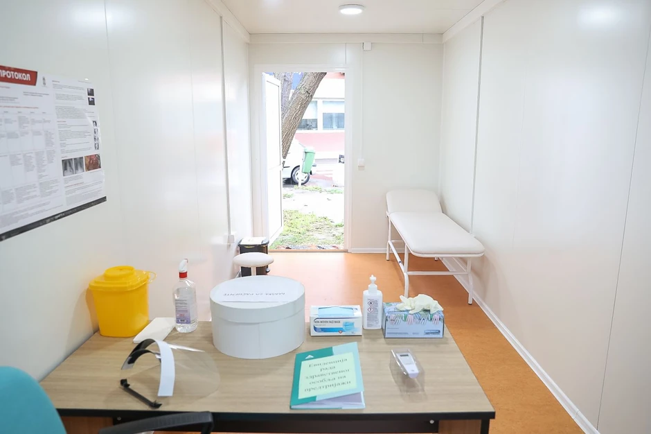 Od posebne važnosti su kontejneri sa nameštajem za trijažu i hitnu medicinsku pomoć kojima je omogućena trijaža pacijenata i sprečavanje pristupa potencijalno zaraženim ljudima u zdravstvene ustanove. Medicinska oprema za kontejnere je takođe isporučena, uključujući krevet za pregled, sto sa dve stolice, beskontaktni toplomer, manje posude za medicinski i infektivni otpad te kantu za otpatke. Od početka vakcinacije, ovi kontejneri se takođe koriste za bezbedno davanje vakcina.