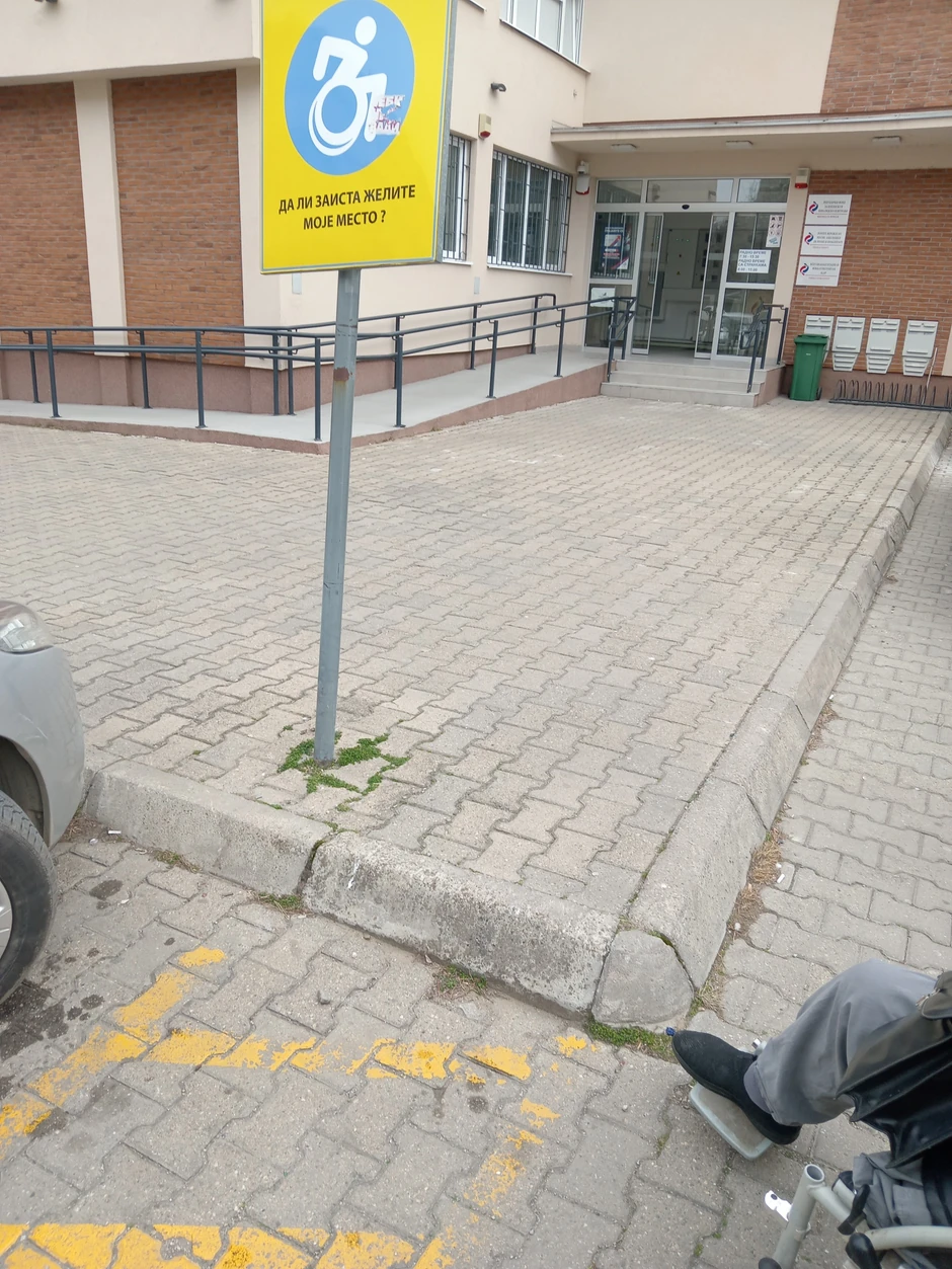 Međutim, problem nastaje kada osoba u kolicima treba da se sa parkinga popne na trotoar i priđe rampi, što je veoma teško, skoro i nemoguće, zbog visokog ivičnjaka.