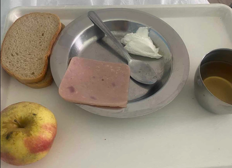 Parče suhomesnatog proizvoda, dve kriške hleba, kašika pavlake, činijica sa čajem. I jedna ne tako sveža jabuka. Tako izgleda obrok, odnosno doručak jedne trudnice u Opštoj bolnici u Smederevu.
