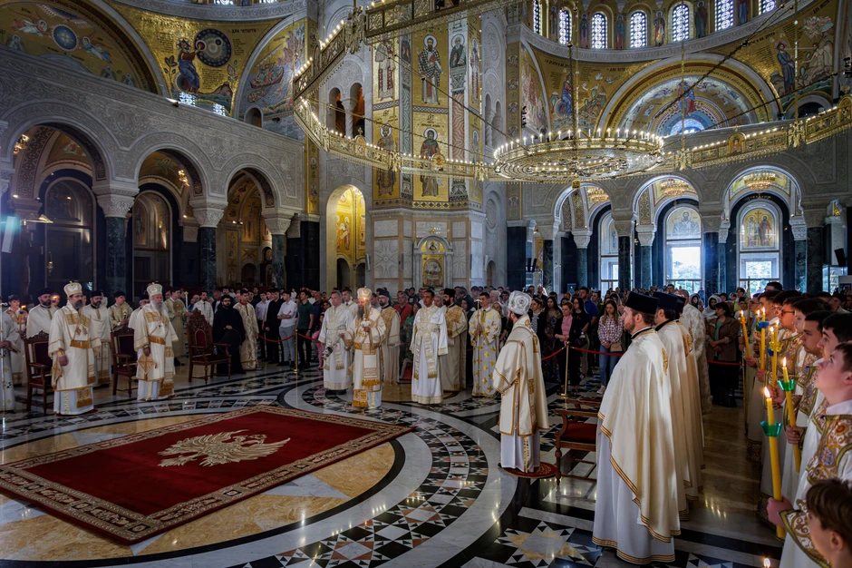 Patrijarh Srpske pravoslavne crkve Porfirije dočekao je danas u Hramu Svetog Save patrijarha Koptske crkve Tavadrosa II nakon čega je služio liturgiju posvećenu Svetim ženama mironosicama.