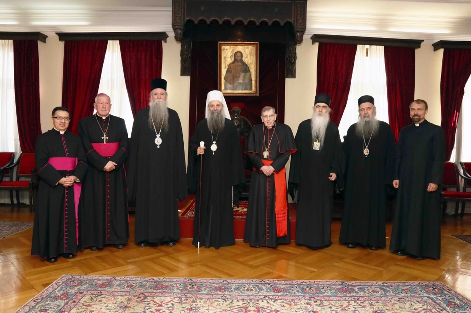 Patrijarh Porfirije i članovi Svetog mitropolit Joanikije i episkopi Irinej i Fotije primili su danas u Patrijaršijskom dvoru u Beogradu Kardinala Kurta Koha, predsednika Papskog saveta za unapređenje jedinstva hrišćana i kopredsedavajućeg Bogoslovske komisije za dijalog između Pravoslavne i Rimokatoličke Crkve.