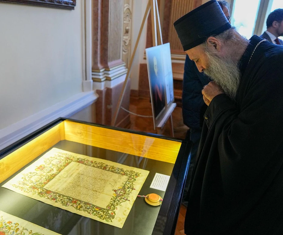 Patrijarh srpski Porfirije u Sremskim Karlovcima je otvorio izložbu arhivskih dokumenata - "Dokumenta Srpskog Siona Potpisi i pečati srpskih patrijaraha i mitropolita u Sremskim Karlovcima 16901913. godine" i ukazao na značaj duha upornosti i predanosti sistematičnom radu za negovanje kulture sećanja i metodologije pamćenja.