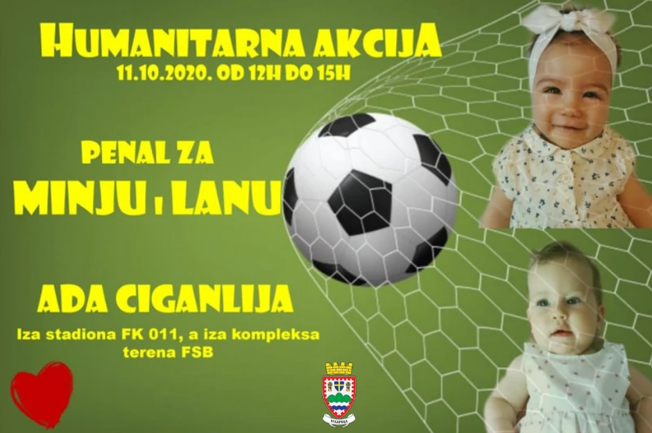 Humanitarna akcija pod nazivom "Penal za Minju i Lanu" biće održana u nedelju 11. oktobra od 12 do 15 sati na terenima "FK 011" na Adi Ciganliji, iza kompleksa terena Fudbalskog saveza Beograda, saopštila je GO Čukarica. Cilj ove plemenite akcije jeste prikupljanje novca za kupovinu najskupljeg leka na svetu koji košta čak 2,1 milion dolara, a koji je devojčicama Lani Jovanović i Minji Matić preko potreban.