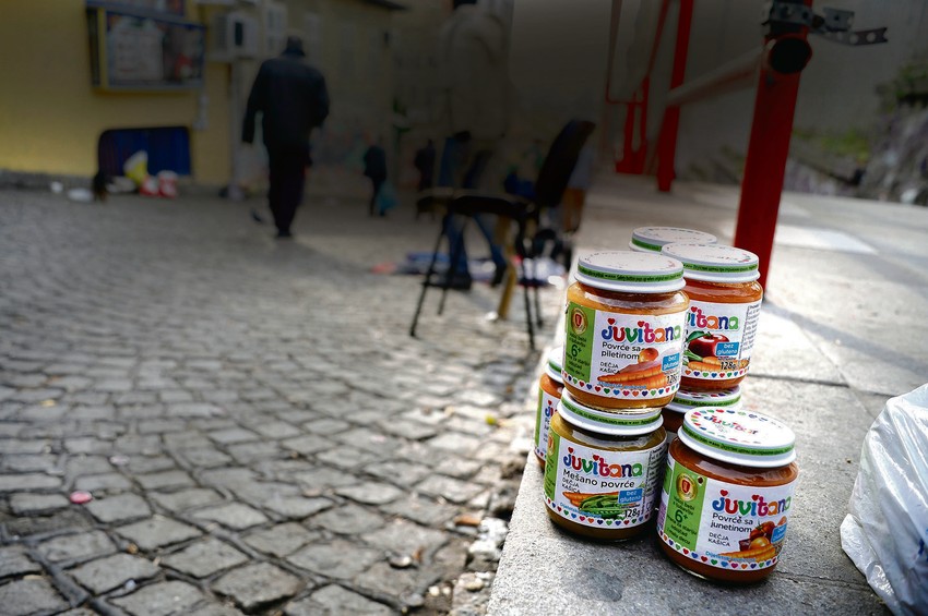 Fotoreporter "Blica" slikao je juče kako se na ulici u blizini beogradske pijace Zeleni venec prodaje "juvitanu". Četiri kašice prodavali su za sto dinara.