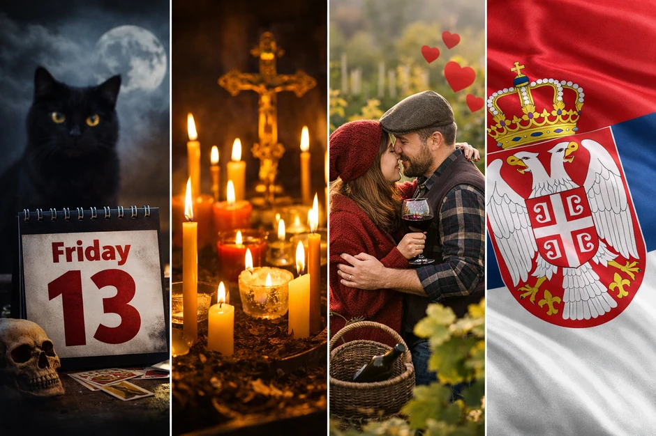 Kraj sedmice pred nama liči na kalendar u malom: od "baksuznog" dana, preko dana kada se sećamo mrtvih i dana kada slavimo ljubav ili vinograd, do jednog od najvažnijeg državnog praznika u Srbiji - Sretenje.