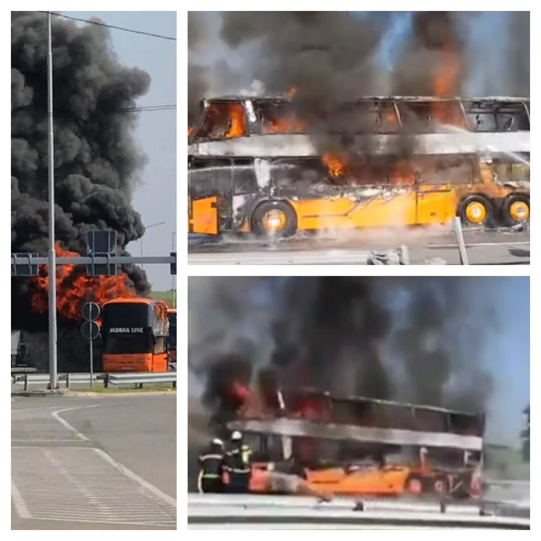 Danas oko 16.30 časova na graničnom prelazu Tabanovce, pred ulazak iz Severne Makedonije u Srbiju, iz još neutvrđenih razloga zapalio se dvospratni putnički autobus novosadskih tablica.